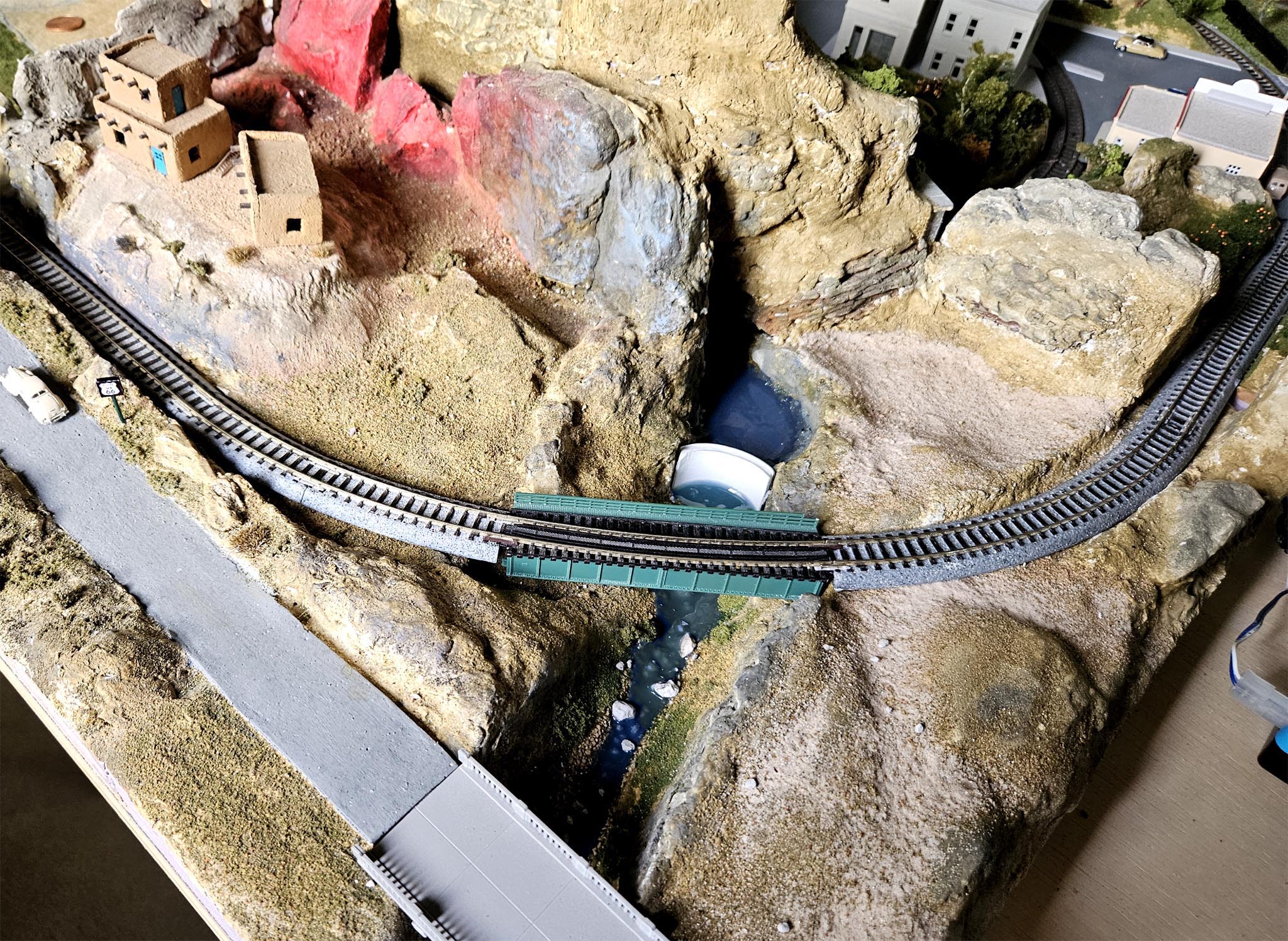 The New Mexico section was originally a test for my Super Chief shelf diorama. When I changed my strategy to building a full layout, I realized it would fit in just fine.